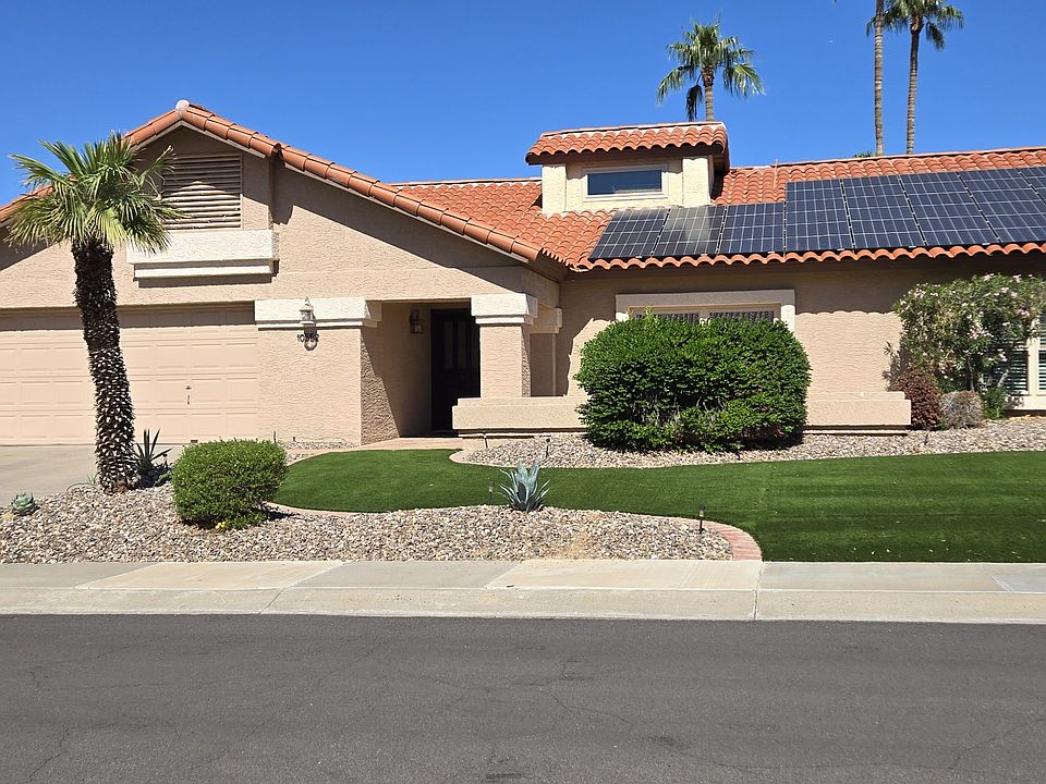 This beautifully updated 4-bedroom, 2-bath home perfectly blends modern design and relaxed comfort. Step inside to an open-concept living space highlighted by vaulted ceilings, rich wood-style flooring, and abundant natural light. The gourmet kitchen is a true showpiece, featuring custom dark cabinetry, sleek quartz countertops, stainless steel appliances including a double oven, and a large island with seating ideal for entertaining or enjoying a quiet morning coffee. French doors open to a spacious backyard with a sparkling private pool, surrounded by a beautifully designed patio and stone detailing that make it perfect for lounging, dining, or soaking up the Arizona sunshine. Additional features include stylish pendant lighting, modern fixtures throughout, updated bathrooms with elegant finishes, energy-efficient windows, plenty of storage space, an attached garage, and in-home laundry. Located in a desirable North Scottsdale neighborhood near parks, restaurants, and premier shopping, this home also offers easy access to the 101 freeway and all the best that Scottsdale has to offer. The garage also has an EV charger for those looking to charge up without footing the bill for charger installation.