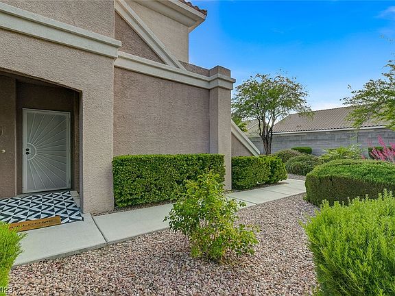 Discover a charming 2-bed, 2-bath gated condo in Silver Pines, Summerlin. This first-floor unit offers unparalleled privacy and an oasis-like ambiance. Enjoy a welcoming front porch and exterior storage. Inside, find a thoughtfully designed floor plan maximizing space and functionality. The primary bedroom boasts a spacious walk-in closet and double sinks in the master bathroom. Perfect for small families, roommates, or a home office. Appliances are included, and the freshly painted walls provide a clean canvas for personalization. Silver Pines offers amenities like a pool, spa, and inviting community spaces. Located in the heart of Summerlin, enjoy nearby shops, restaurants, entertainment, and parks. Easy access to major highways for seamless commuting and city exploration.Make this Silver Pines condo your private paradise. Schedule a viewing today to experience the ideal blend of convenience, privacy, and comfort in Summerlin's heart.