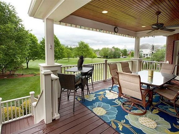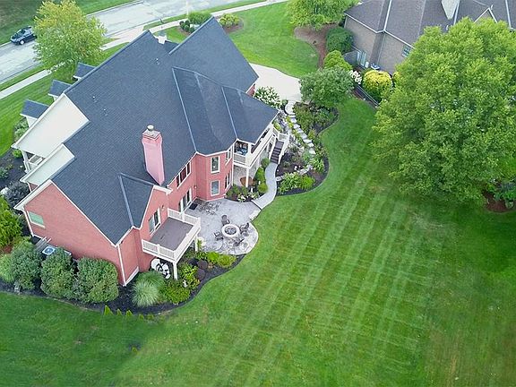Enjoy golf course living! Spectacular view of Triple Crown #12 Green. 1st floor master suite, two bedroom suites on 2nd floor & one in lower level. Spacious kitchen w/large island & butlers pantry. 1st floor study w/french doors. Walkout lower level has tall ceilings, large windows, a wet bar, pool table area, card nook & family room w/a gas fireplace. Spend your evenings on the covered deck enjoying the peaceful golf course views. The back yard offers a stamped concrete patio, gas starting fire pit & relaxing water feature. Oversized side entry garage & huge lower level storage room.