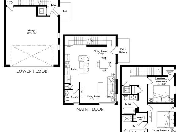 Discover the Kendrick, a stylish three-story rowhome featuring 2 bedrooms, 2.5 baths, and open, well-designed spaces ideal for low-maintenance living. The entry level welcomes you with a private front entrance, patio area, and a spacious two-car garage offering plenty of convenience and storage. On the main floor, the open-concept kitchen, dining, and living areas flow together for effortless entertaining. The modern kitchen is part of the Grand Lake color package, showcasing white cabinets with soft-close features throughout, complemented by a large island that overlooks the dining area and living room. Sliding doors open to a private balcony—perfect for indoor and outdoor enjoyment. A convenient powder bath completes this level. Upstairs, the primary suite provides a relaxing retreat with a large walk-in closet and a private bath with dual sinks. The secondary bedroom also features a walk-in closet and access to a full bath, making it an excellent space for guests or roommates. A centrally located laundry area adds extra everyday ease. The Kendrick blends modern design with comfort and functionality, offering a lock-and-leave lifestyle ideal for today’s busy homeowners.
