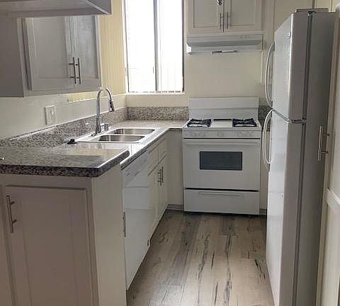 Large upstairs unit; Great location with nearby coffee shops, restaurants, parks, schools, freeway entrance, etc.); large closet spaces, hardwood floors (laminated), stove, dishwasher, refrigerator, air conditioning, balcony, and covered garage parking spaces. Pets: only one (1) pet is allowed (cat or small dog) with Landlord approval and Pet Deposit. Call for faster response. Owner pays for water & trash; Tenant pays for utilities (gas & electricity)