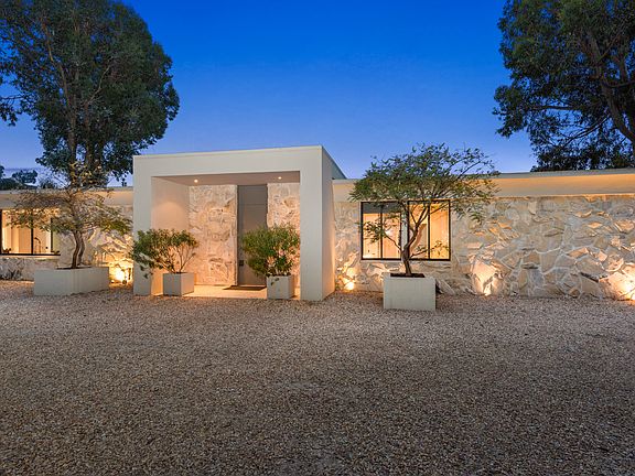 Shimmering poolUplifting fireplaceResort-style landscapingGravel motor courtCustom cabinetryArboreally adorned grand entranceOpulent primary suite
