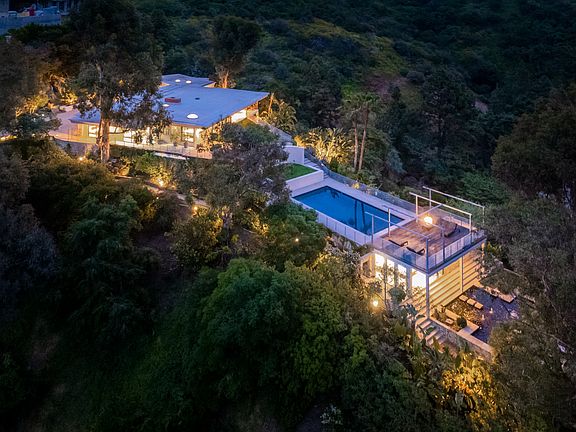 This home and all our listings are available immediately to assist displaced victims from the fires. Available fully furnished and turnkey for short, midterm, or long term lease! Rustic and urbane, old-world and high tech, where rural estate meets downtown elegance in this once in a lifetime sensory immersion experience. Escape from ordinary down the a private driveway to the gravel motor court, earthy stone fascia, and arboreally adorned grand entrance to the exquisite execution of this contemporary hillside estate. Natural light will greet you in virtually every corner of the dramatically-styled indoor-outdoor open plan living spaces with floor to ceiling glass walls that reveal resort-style landscaping and marvelous canyon views. You will cherish every moment in the spacious living room with its uplifting fireplace, family room, dining room, gourmet kitchen with professional appliances, custom cabinetry and breakfast, and covered patio. Indulge your inner sun-worshiper on the rear lawn and wood deck or beside the shimmering pool in the viewing pavilion. Retreat to the opulent primary suite, nestled in pastoral splendor and featuring a fireplace, large walk-in closet and dressing area, and picturesque bath with dual basins, spa tub, and steam shower. A guest/maid suite with bath and laundry room is located off the kitchen and two additional guest rooms with a shared bathroom are available for your family and friends. A detached guest house with bedroom, bath, kitchenette and private patio with koi pond is available for extra special guests or private getaways. Expertly decorated with curated artwork and careful attention to the balance between color and texture and light and dark, as you ensconce yourself in a perpetual source of positive energy day and night, whether you're entertaining, working, or relaxing, alone or with family and friends. Located on a cul-de-sac off of Stone Canyon and tucked away in the gorgeous hills of Bel Air, this one-of-a-kind domicile is an encounter to remember.