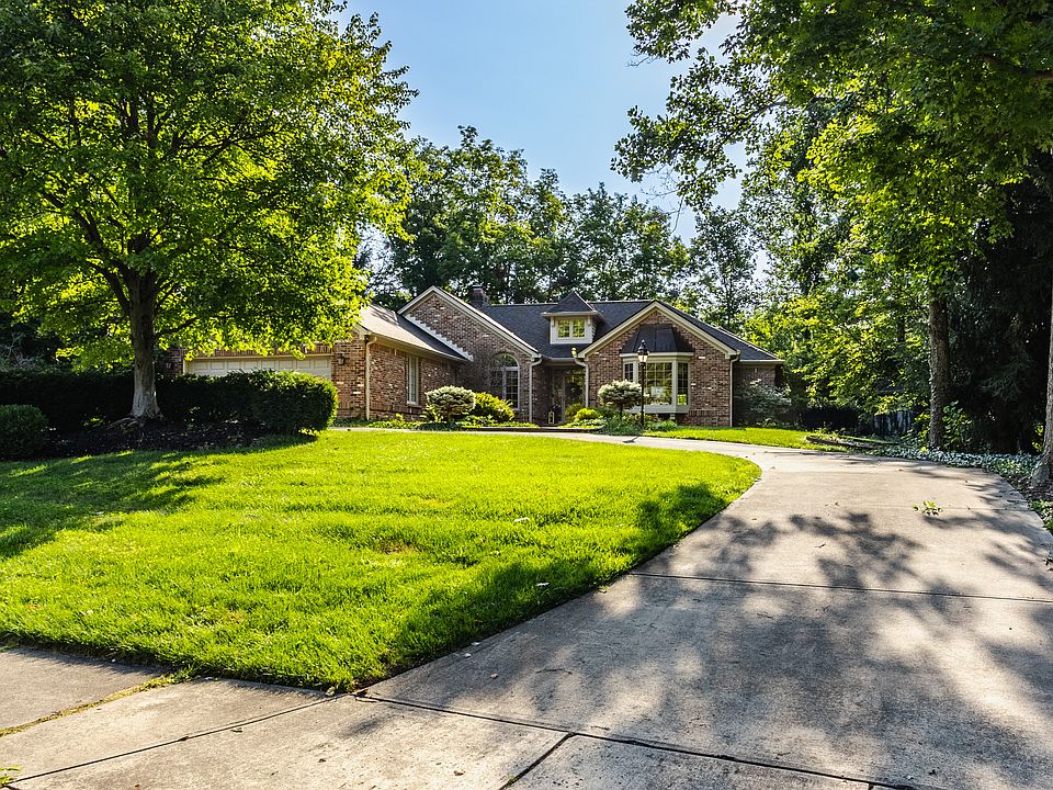 Quiet elegance meets everyday comfort in this remarkable residence. From the circular driveway framed by manicured gardens to the inviting pool and refined interiors, this home is designed to impress. Inside, herringbone hardwoods greet you in the foyer and carry through to the kitchen. The breathtaking living room showcases soaring cathedral ceilings, a stately fireplace, and a wall of windows with sliding doors that frame views of the lush gardens, patios, and sparkling pool. The chef's kitchen is a true centerpiece with a large center island, brand-new quartzite counters, and a stylish tile backsplash. It opens seamlessly to an informal dining area and the sun-drenched four-season room-separately heated and cooled-where vaulted ceilings and walls of windows create a serene retreat. The primary suite offers the perfect end-of-day escape, featuring expansive walk-in closets and a spa-like bath with dual vanities, a soaking tub, and a separate shower. Two additional bedrooms and a full bath complete the main level. The lower level is the home's coup de grace, boasting a spacious family room with a cozy fireplace and built-in bookshelves, plus a flexible exercise room or office and a convenient half bath. Outdoors, beautifully landscaped grounds set the stage for multiple patio areas, a pool with an electric cover, and a charming pool house-ideal for entertaining or private relaxation. All of this just minutes from Geist, shopping, dining, and with an easy commute throughout the city, this property truly checks every box.