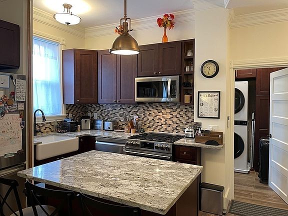 Fantastic renovation that's barely been lived in! This 1 bedroom unit is the epitome of comfort with all the amenities. Custom kitchen with loads of storage, full size appliances, a lovely island that is great for dining and entertaining. Gas cooktop and electric oven for the cooking fanatic, High ceilings throughout are accented with crown molding. Loads of windows allow the sunlight to stream in. The bathroom has heated floors, a large tiled shower, and a separate laundry area with full size W/D. Bedrooms is spacious and the closet has custom shelving and storage. Unit has central heat included and supplemental wall mounted heating elements. Adjacent rental parking is potentially available. Available for rent as early as 1/20 or will accept an 2/1 start date. 2023-01-10