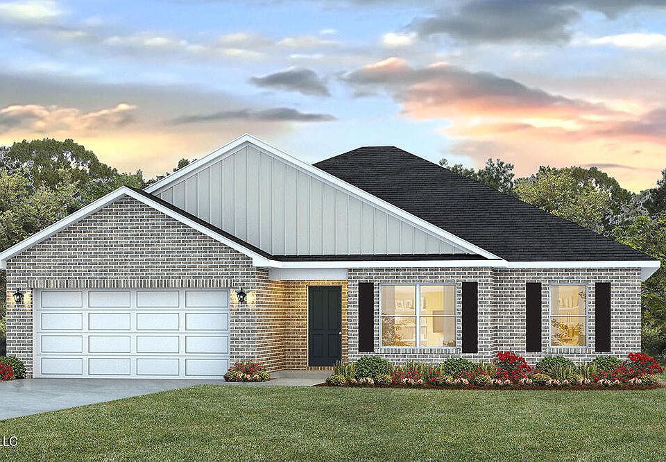 . Meet the charming Booth plan nestled in the heart of Long Beach, the number one school system in the state. the Cali plan, a spacious 4 bedroom, 2 bath home design with four-sided brick, gas, and vinyl exterior as well as a 2-car garage. Includes upgraded luxury vinyl flooring, granite counters, soft close cabinets in kitchen and bathrooms, as well gas tankless water heater, a large kitchen island. The primary bedroom is at the back of the home for privacy. Recessed LED light package and home is smart home. The home is built with engineered plans and built with expansion joints on each side for a preferred insurance rating. The roof and sides are covered in Zip sheathing which is used in areas with high winds and wind driven rain. The primary bedroom features a soaker tub and a separate shower as well as dual vanities and a large walk-in closet. Pictures are of a previously built home with the same or a similar floor plan