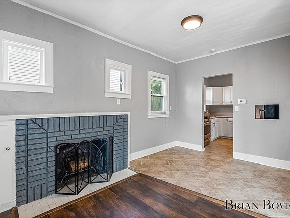 Inside, this 3-bedroom, 2-bath home is full of character and flexible living spaces. A spacious living room with large windows welcomes you in, leading to a bright sunroom on one side and a cozy lounge with a brick fireplace on the other. The main floor also features a bedroom and full bath for added convenience.