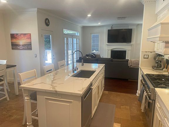 Sparkling pool and jacuzziCozy fireplaceDramatic curved staircaseQuiet streetOutdoor kitchenTop-of-the-line appliancesStone countertops