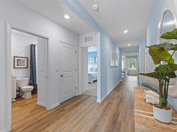 Under Construction. "Discover the Madison, a versatile single-story home at Ironwood. This spacious layout includes 4 bedrooms, 3 bathrooms, and a 3-car garage, making it perfect for modern family living. Inside, the open-concept design seamlessly blends functionality and comfort, ideal for daily living and entertaining. The chef-inspired kitchen features stainless steel appliances, a large center quartz island, and an expansive walk-in pantry, overlooking the living and dining areas. Enjoy the Florida weather year-round with easy access to the covered lanai from the living space. Each bedroom offers comfort and privacy with carpeted floors and ample closet space. The primary suite, at the rear of the home, includes an en-suite bathroom with a walk-in closet, double vanity, and walk-in shower. Additional bedrooms are well-sized, with two sharing a bathroom and one having its own for added convenience. The Madison includes a dedicated laundry room and a 3-car garage, offering ample storage and parking. Advanced smart home technology enhances security and convenience, allowing remote control via your smart device. *Photos are of similar model but not that of exact house. Pictures, photographs, colors, features, and sizes are for illustration purposes only and will vary from the homes as built. Home and community information including pricing, included features, terms, availability and amenities are subject to change and prior sale at any time without notice or obligation. Please note that no representations or warranties are made regarding school districts or school assignments; you should conduct your own investigation regarding current and future schools and school boundaries.*