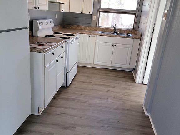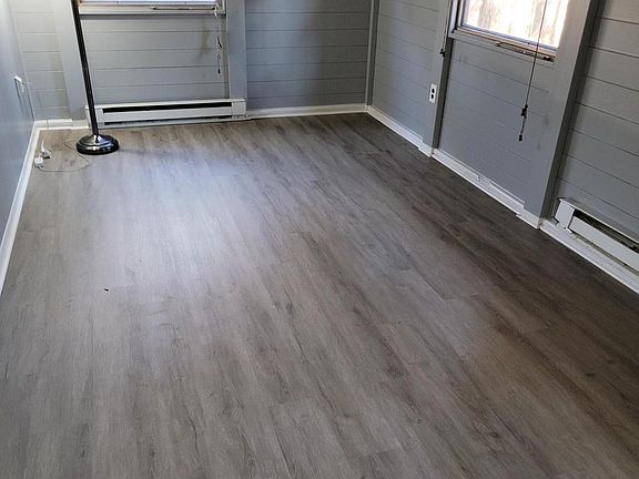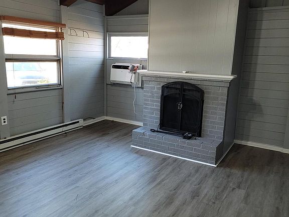 This is a 2 br 1 ba home. Has open beam ceilings. Just been painted throughout. New laminated flooring throughout. Brick fireplace in the last 5 years was relined. Electric baseboard heaters. 2 driveways. Large corner lot.
