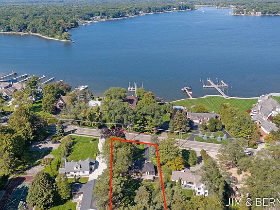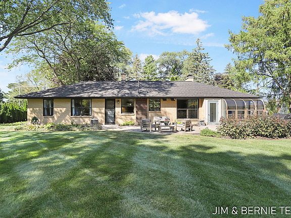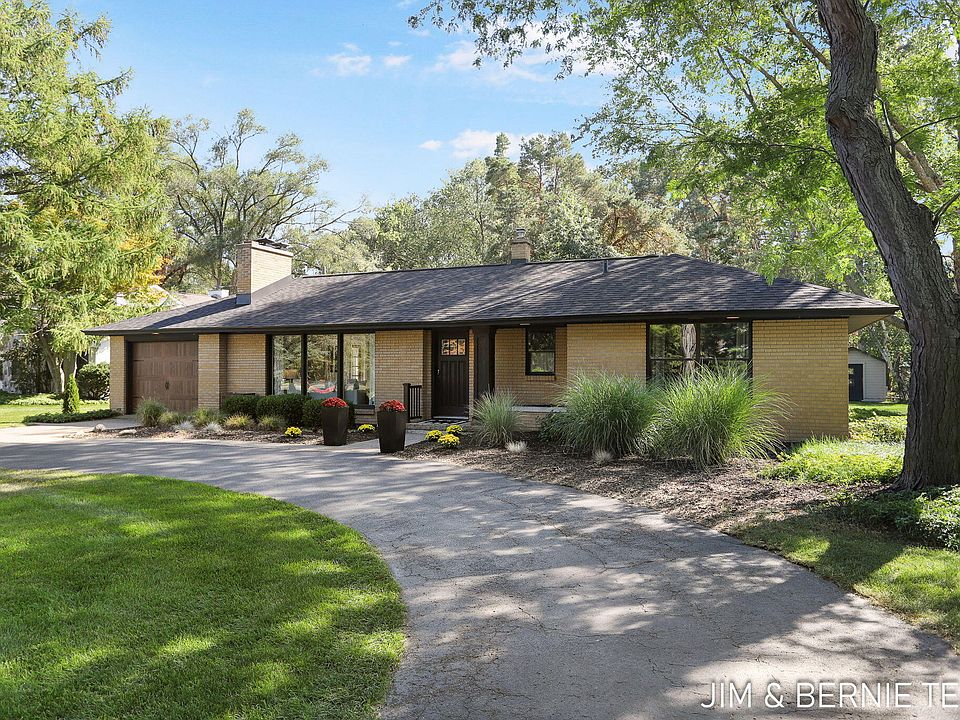 Unbeatable location across the street from Lake Macatawa on Holland's south side! This fully renovated 3-bedroom brick ranch combines modern updates with timeless charm. The main living area has been opened up, showcasing a spacious kitchen with a large island, built-in appliances (electric oven and cooktop, microwave, dishwasher, and French door stainless refrigerator), and plenty of designer details - custom cabinet fronts, butcher block island, under-cabinet lighting, ceramic backsplash, and a unique wood plank ceiling. The dining area features expansive windows overlooking the back patio with easy access to the sunroom and built-in cabinetry, perfect for storage or display. A cozy fireplace and oversized windows in the living room provide natural light and glimpses of the lake. Throughout the main floor, you'll find hardwood and ceramic tile flooring, three comfortable bedrooms, and a beautifully updated full bath with custom tile and a solid surface vanity offering generous storage. The unfinished basement provides laundry and abundant storage space. Outside, enjoy a horse-shoe driveway, attached one-car garage, spacious backyard with patio, storage shed, and underground sprinkling system. A rare opportunity to live just steps from Lake Macatawa in a move-in ready home!