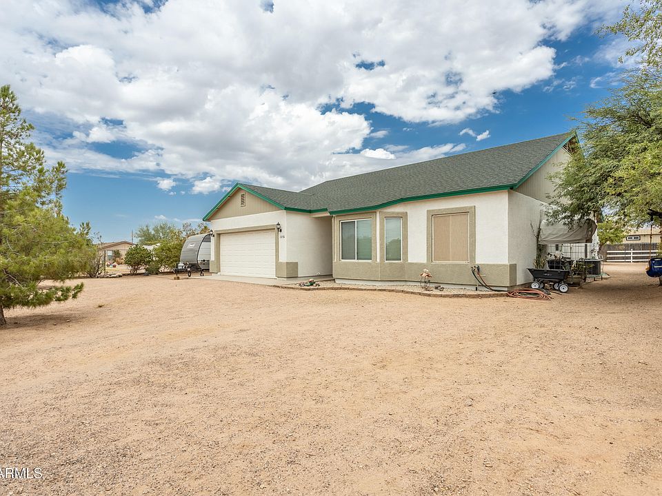 Large front and back yards have lots of room for gardening, RV parking, and even adding a pool! Backyard has a fire pit with benches a play area with astroturf grass, and gardening beds. Garage is extended size, has a utility sink, and a pull-down door for attic access.