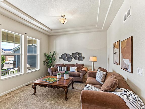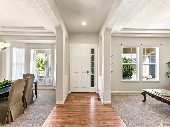 Imagine living in this incredible ranch-style home conveniently located on a cul-de-sac in coveted Chatfield Farms. This 5 bed/4 bath home with 5,205 total SqFt features a light and bright floor plan with multiple flex spaces throughout, perfect for today’s modern living. Enjoy the gorgeous curb appeal of the professionally landscaped front yard of this nearly ¼ acre lot. The elegant foyer features custom coved ceilings over the dining room and adjacent living room. The sunlit and airy great room includes a handsome fireplace with built-ins, large seating area and wet bar. The kitchen finds a large island, a generous amount of counters and cabinets, recipe desk, granite counters, and stainless appliances. The kitchen area also features a butler’s pantry leading to the dining room and sliding glass doors to the expansive backyard patio. Continue to the main floor primary bedroom with ensuite five-piece bathroom, soaking tub, and huge walk-in closet. This floor also finds two guest bedrooms (one that could make an excellent home office), a full bath with dual access from the hallway and the second bedroom, powder bathroom, and laundry room. Retreat to the recently updated finished basement with a second family room featuring a contemporary fireplace, game room, two additional bedrooms, a 3/4 bathroom, and an oversized media room—absolutely perfect for movie nights that includes a full-size screen and projector. Other features include gorgeous wood floors on the main level and primary suite, and new carpeting in the living room and dining room. The private backyard retreat includes an expansive stamped concrete patio, firepit, pergola, and amazing landscaping with water feature. Just walking distance to the beginning of the Highline Canal trail, and a short distance to area shopping and restaurants, and you’ll enjoy biking/walking to Waterton Canyon and Chatfield Reservoir. Complete with a three car garage this Chatfield Farms home is a must-see!