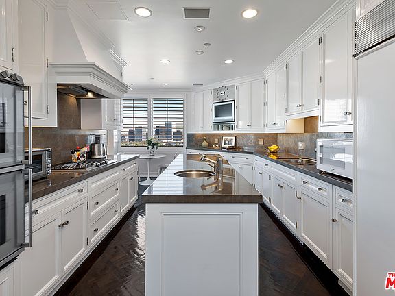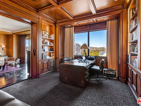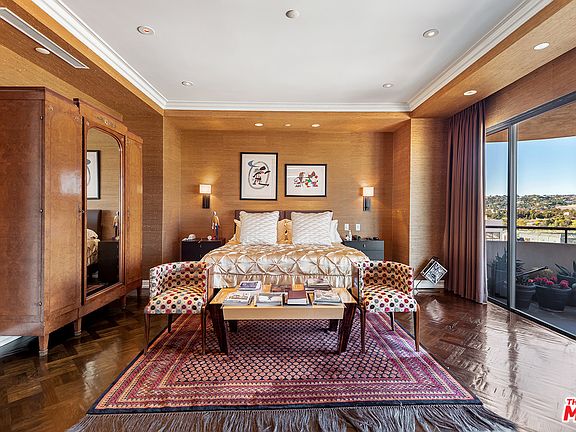 Views,Views,Views! This sophisticated and chic New York Manhattan style condo has incredible finishes,three balconies and exquisite dark French Oak floors, explosive views from Century City to Hollywood hills. Spacious open floor plan with living room, f/p, dining area. This master suite with adjacent custom paneled library (formerly two bedrooms) luxurious bath, walk-in closet offers additional outdoor seating area to enjoy views. Spacious gourmet kitchen with top of the line appliances, walk in pantry, refrigerated wine storage, center island and ample space. One of the finest buildings on the Wilshire Corridor offering full service security conference, concierge, expansive lobby, exercise room, swimming pool sauna and spa. Must see!