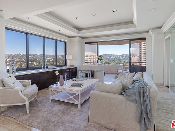 Largest corner single level unit at the 10560 Building on Wilshire with 3 large balconies. Panoramic and unobstructed NE / NW / SE views of Holmby Hills, Century City, the Hollywood Hills. to the Ocean Formal entry leads to a large open floor plan that is an entertainer's dream with marvelous flow from the living room, den with wet bar, and dining area. The views of the city are spectacular anytime of day or night. Custom marble and hardwood flooring throughout. Spacious gourmet chef's kitchen features center island, breakfast area, and top of the line appliances. Oversized master suite has sitting area, large closets, and luxurious master bath with spa tub, separate shower, and dual vanities. Second bedroom has large closets and large bath. The 10560 Building features 24 hour full service amenities including concierge, valet parking, pool, fitness room, and meeting/banquet room.