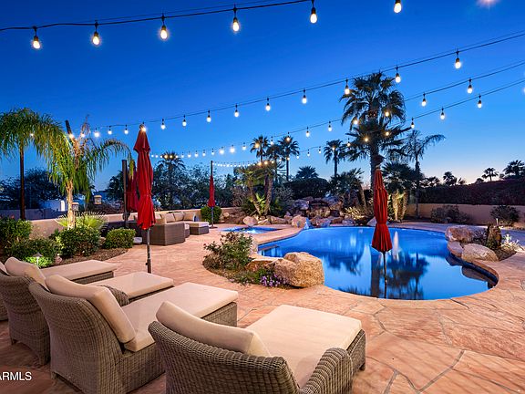 Listed below appraised value! Nestled at the end of a peaceful cul-de-sac in the coveted Scottsdale Foothills neighborhood, this beautifully updated Spanish-style home offers the perfect blend of comfort, style, and functionality for family living. Set on a spacious 0.80-acre lot, this home provides both privacy and views of the mountains and city lights, making it a true desert oasis for your family. The open-concept design is ideal for family gatherings, featuring spacious living areas that flow seamlessly, with soaring ceilings and elegant architectural details. The inviting family room is perfect for cozy family nights, while the gourmet kitchen with custom cabinetry, high-end appliances, and a generous center island is ideal for family meals and entertaining. The split primary suite provides a serene retreat with updated bathroom, dual closets and private access to the backyard. Adjacent to the master suite, a spacious office offers versatility and could easily be converted into a bedroom. Three additional bedrooms offer plenty of space for children or guests, and the updated bathrooms ensure comfort for the whole family. The backyard is an entertainer's paradise, with a custom pool featuring a stunning rock waterfall, perfect for family fun and relaxation. The outdoor ramada with a built-in bar and fireplace is ideal for barbecues and cozy evenings spent together. With easy access to top-rated schools, parks, restaurants, and all that Scottsdale has to offer, this is a rare opportunity to own your dream family home in a coveted location. Don't miss out on this exquisite property and a rare opportunity to experience the best of Arizona living.