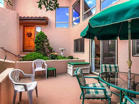 The breathtaking beauty of Roxborough Park is in a class of its own. Its dramatic red rock formations are just the beginning in the wonders of this vibrant community. Scenic trails, hiking, biking, or a simple stroll will imbue you with peace and quiet. Cheerful birdsong, wildlife sightings, friendly neighbors and nature merge to create perfection. Golfers are minutes away from stunning Arrowhead Golf Course. Clubs and activities are available, and city excitement is nearby. The gorgeous views from nearly every room in this home will captivate you. This South-West style home has two super master bedrooms with en suite baths. A conveniently located den - work from home- and third bedroom with full bath. Brilliant Sautillo tile floors flow throughout. From your kitchen windows sweeping views seem endless. Food preparation and serving are easy with the convenience of large countertops, center island, generous pantry, and lovely breakfast area. Laundry duties seem almost pleasant in the bright, windowed laundry room with sink, counter, and built-in ironing board. Two of the three skylights-- in the kitchen and master bathroom-- bring in fresh air as well as light. A beehive fireplace and cozy built-in bancos grace the large living room. A small bar, sink, and serving area are handy for serving drinks .The formal dining room has an arched view into the kitchen and beyond. A large serving counter, spanning the kitchen into the dining room, inspires special gatherings, and a glass door leads to the charming fenced-in terrace, featuring flagstone and roses on climbing trellises, inviting quiet respites. Downstairs is a great family room with beehive fireplace, custom desk and sliding door opening to the courtyard. Here as well is the second master bedroom with large, jetted bathtub. The interesting architecture and functionality of this beautiful home will enhance your everyday living, and you will always be delighted to live in such a glorious home and welcoming community.