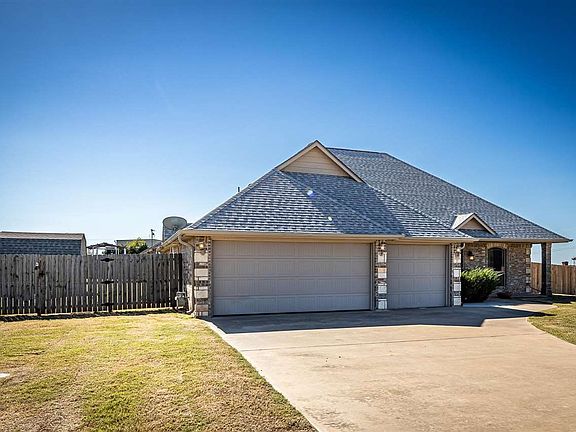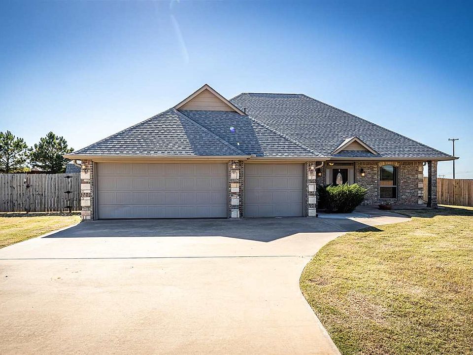 Welcome to The Haven, a sought-after neighborhood where charm and comfort meet. This stunning home features four spacious bedrooms and two modern bathrooms, including a generous primary suite with a private bathroom. The open living area creates a warm and inviting atmosphere for gatherings or quiet evenings at home. Step outside to the covered back patio, perfect for relaxing while overlooking a half-acre lot, or enjoy the serene views from the extended front porch. The backyard is enhanced by a sizable shed and a storm cellar for added convenience. Meticulously maintained by its owners, this property is in pristine condition, with a new roof installed in 2024, making it ready for you to move in. For more details or to arrange a personal or virtual tour, please reach out to Listing Agent Lawrence Hargrave at 580-647-3245.