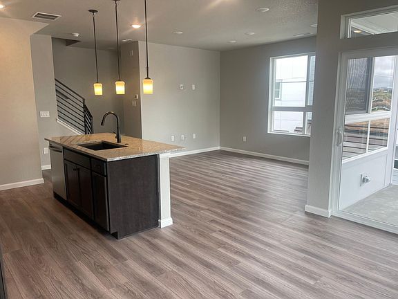 Almost new construction on Interquest Parkway! Location is near US Air Force Academy and fast growing shopping and entertainment near Scheel's, Hollywood Theaters, The Summit, and Wolf Lodge. Minutes from I-25 and walking distance to In-N-Out burgers, Chipotle, Panda Express and soon to open H-mart. This home has wide open kitchen with granite counter tops and wood laminate flooring and 1/2 bath with outdoor balcony on 2nd floor. 3rd floor has 3 bedrooms, laundry with 2nd bathroom and master bedroom and master bath. 2 car attached garage! Central AC, tankless hot water heater, and refrigerator included!
