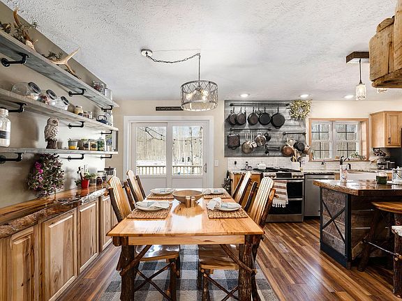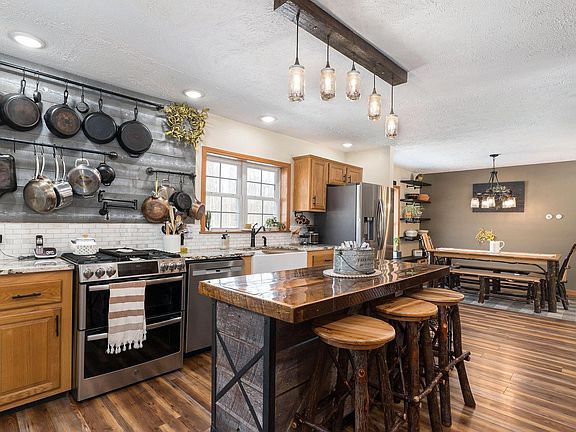 Nestled amongst towering pines, this beautifully updated 5-bedroom, 3-bathroom modern farmhouse ranch offers a private, serene setting on over 35 acres of land. With tasteful updates throughout, the home combines modern comfort with rustic charm, providing the perfect escape into nature. Inside you will be greeted by stunning laminate flooring that flows throughout the main level, contemporary light fixtures and neutral paint tones making this home move in ready! The kitchen is a true standout, featuring a stylish tile backsplash, solid surface countertops, stainless steel appliances, a built-in buffet, open shelving, an eat-in island and opens up to the back deck and fenced in yard. The main floor features a private primary suite, complete with an en-suite bathroom and a walk-in closet. Two additional guest bedrooms and a well-appointed guest bathroom provide ample space and privacy for family or visitors. The large family room, with its seamless flow onto the newly added expansive deck, offers an ideal space for entertaining or simply relaxing while enjoying the picturesque surroundings. The finished lower level is designed for comfort and versatility, featuring two additional bedrooms, bathroom, kitchenette, family room, and a flexible space that can easily serve as a home gym or office. Outdoors, you’ll find a variety of spaces to indulge your hobbies, with garden areas, small pastures, and sheds perfect for housing small farm animals. A 30x60 insulated and heated pole barn with lean to is the ultimate addition, providing workshop space and storage for those seasonal toys. This land offers ample room for hunting or simply exploring, making it the perfect private retreat. Find yourself close to the charming towns of Beulah and Frankfort, offering schools, shops, restaurants and access to lakes, rivers and hiking/biking trails.