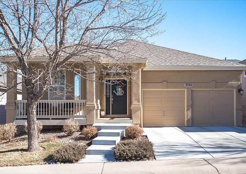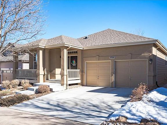 Bright, light-filled home with everything you need on one level, including main floor laundry room and formal dining room. Thoughtful updates included remodeled great room with gas fireplace, wall mounted TV and built-in storage, upgraded hardware on all doors, newer stainless steel appliances, newer front walkway and driveway (2015), plantation shutters. The walkout basement features a family room with speakers and dry bar, 2 bedrooms, full bathroom and plenty of storage. Covered deck overlooks low maintenance yard that is especially private in the summer. Backs to gorgeous open space maintained by HOA. The following items are included with the sale of the home: wall mounted TVs in great room and master bedroom, dry bar in basement family room, moveable metal shelving in the mechanical room, storage cabinets in the garage. Access to 4 Highlands Ranch Fitness Centers