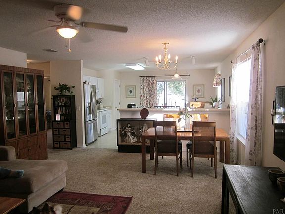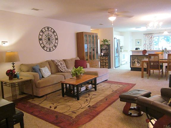 Move-in ready! As you step into the foyer, you immediately notice the open floor plan from the great room- to the dining area- to the kitchen- and then the patio doors leading to a shady back yard. The kitchen has been recently updated.... solid surface countertops, porcelain tile floors, and painted upper/lower cabinets. There's even space in the center for a small kitchen table too. The master bedroom has new paint and carpet and is tucked away in the back of the home. Master bathroom has double vanities walk-in closet, tile floors. Roof replaced in 2016. Close to Publix & Walmart (~4 miles), Navy Federal (~ 7 miles) and I10 access.
