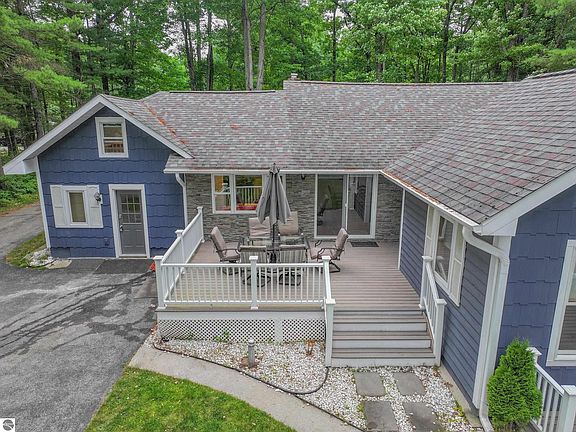 Vacation days await! The perfect retirement home awaits! A park like setting on Cedar Hedge Lake with an extra large lot and big waterfront are hard to find in northern Michigan. This home has been renovated and updated for stylish and easy living with main floor living, 4 bedrooms, 3 baths, an enclosed porch where you will want to spend all of your time. Master bedroom suite has its own bath, with hot tub outside the deck door. The large Trex deck overlooking the lake is perfect for peaceful morning coffee and evening loon listening. 38 X 32 detached garage. Located close to Interlochen Arts Academy and trails and trails.