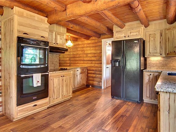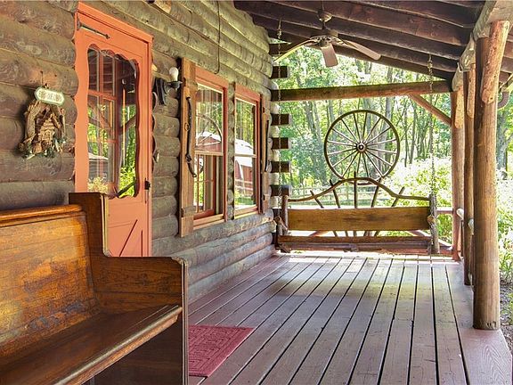 Welcome home to this beautifully serene private property featuring an authentic log cabin. You'll enjoy over 5 acres of land that has a perfect blend of wooded treed areas, pasture, fenced-in sections for your animals, walking paths and a stream. There is a detached garage as well as an adorable barn with ready-to-go animal pens just waiting for its new occupants. The cabin has two very generous outdoor spaces for relaxing in the country including a huge covered front porch and beautifully maintained deck. Inside there is a stunning kitchen with hickory cabinets and granite countertops. A vaulted great room and loft provide a cozy atmosphere for enjoying the wood-burning fireplace. There are three bedrooms and two full/one half bathrooms. A fully finished basement completes this adorable home and includes a spacious rec-room, additional flex space and laundry room. This home won't last! Schedule your private showing today