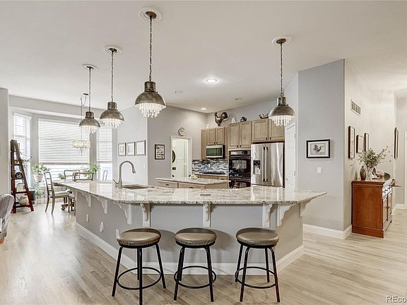 Beautiful Ranch home located in desirable Chatfield Farms is back on the Market! With over $75,000 in upgrades, this home is the one you have been waiting for! Step into a spacious open floor plan with elevated ceilings and numerous windows for warm natural lighting. The incredible gourmet kitchen boasts granite countertops, two islands, double oven, gas stove, a large pantry and refinished main level wood floors. Kitchen flows into family room that includes a gas fire place, large TV bay and is pre-wired for surround sound. The main floor primary bedroom has an updated five-piece master bath with seamless glass shower, soaking tub and granite countertops. There are two more main floor bedrooms that share a full bathroom. Handy main floor laundry space has a newly installed stainless steel sink, new washer, new gas dryer and newly installed pocket door.