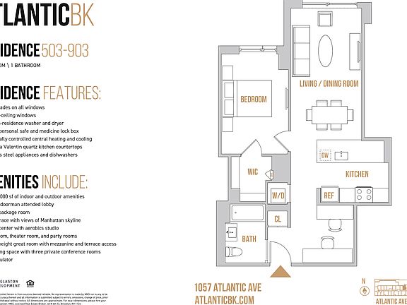 AtlanticBK features thoughtfully designed one-, two-, and three-bedroom residences that seamlessly blend luxury, sophistication, and convenience. Each residence boasts floor-to-ceiling windows, in-unit washer and dryer, and individually controlled heating and cooling. Many layouts offer breathtaking, unobstructed views of the Manhattan skyline.