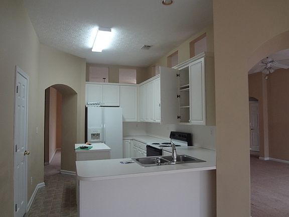 This home has living room and den plus 4 bedrooms. Exterior just freshly painted. High volume ceilings in living area with cut outs to kitchen. Nice sized master bath with double closets. Two bedrooms on each side of home. Open kitchen to den. Rear patio and back yard enclosed in privacy fence.