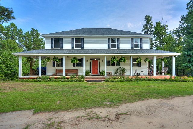 Beautiful almost New Estate home on 29 acres with an open floor plan and wrap around front porch. This place is the kind you dream about with 80 blueberry bushes and plenty of room roam. Take a swim in your very private salt water system pool. Once inside you can enjoy entertaining in a modern kitchen with solid surface counters and European Style cabinets! There's another living area upstairs with the bedrooms and laundry facilities next to bedrooms! Another living area in the walkout basement with Rec room and media room! 15 minutes from gate 5 at Fort Gordon. A real one of a kind property!
