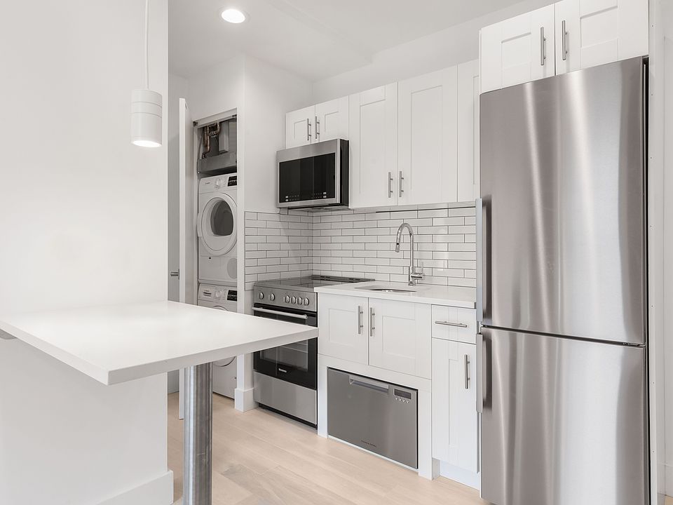 Inside the unit, you'll enjoy the open-concept kitchens and living space with stainless steel dishwasher, microwave, stove, large windows, in unit washer/dryer appliances, and exposed brick walls. You'll also get features such as a Smart Lock and Intercom System with Latch and central AC to enjoy a blend of style and convenience.