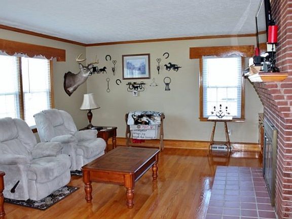 Big things come in small packages! Be prepared for a pleasant surprise when you see the inside of this home.......lots of room!! This home has (3) living/family rooms: One formal living room (w/ fireplace) & one family room on the main level & one family room in the basement (w/fireplace). Master bedroom has attached master bathroom on one end of the home and two additional bedrooms and full bathroom on the opposite end of the home. Huge eat-in kitchen w/lots of counter space, plenty of storage, two prep areas w/sinks, & built in desk area. Connected to the family room in the basement, you will find a laundry area, cabinets for storage, plenty of counter top space, wood stove (to help keep those heating bills LOW), closet space for storage, and full bathroom. With a few additions, you could have a complete kitchen in the basement! Outside, there is a separate area w/separate entrance that is unfinished & makes the perfect spot to store gardening tools plus a recently purchased 19' x 10' storage building. Also outside, you will find a wonderful covered deck that will make a perfect gathering spot for family and friends, rain or shine! Call today to see this wonderful property.
