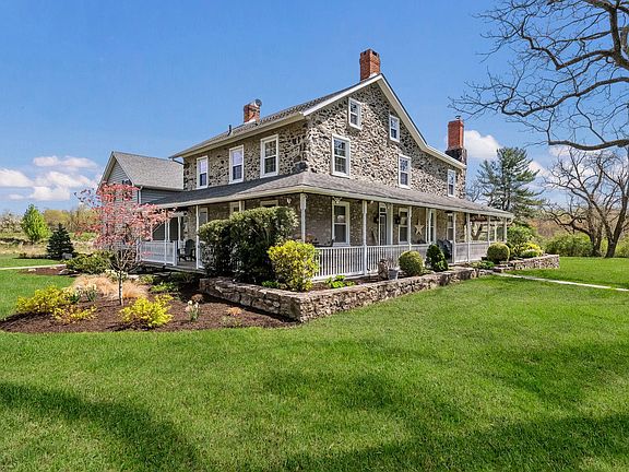 Welcome to 1057 Mariwill Drive — Where Timeless Charm Meets Modern Living! Tucked away at the back of the Reserve at Woodside Creek community, this extraordinary 5 bedroom, 3.5 bath modern farmhouse sits on 3+ picturesque acres, offering the perfect blend of historic character and contemporary comfort. A sprawling 3 car garage and a stunning, versatile barn enhance the property’s appeal. Arrive to find abundant guest parking, a newly installed bluestone porch, and professional landscaping that sets a welcoming tone. The original farmhouse, dating back to the early 1800s, was thoughtfully expanded with a beautiful addition completed in 2018. Step inside a spacious foyer, stylish half bath, oversized laundry room, and a charming original stone wall. The heart of the home — the kitchen — is a chef’s dream, featuring a large center island, granite countertops, an abundance of cabinetry, walk-in pantry, tile backsplash, and a triple window that bathes the space in natural light. Adjacent to the kitchen, the breakfast area boasts a brick accent wall and sliding glass doors to the backyard. The original farmhouse dining room, with its wide plank floors, fireplace, and plentiful windows, invites you to step back in time. Nearby, the music room highlights the home's original staircase and stonework, while the spacious family room provides the perfect living space just off the kitchen. Upstairs, the turned staircase leads to a loft — ideal as a home office or reading nook. The bright and airy primary suite features large picture windows, multiple closets and heated floors. Its luxurious en-suite bath offers dual vanities, granite counters, a frameless glass shower, brick-style tile floors, and the heated flooring continues for added comfort. An additional ensuite with private bath, three additional well-sized bedrooms and a full hall bath complete the second floor. A walk-up attic provides extra storage. Outdoor living is equally impressive with an expansive bluestone patio, perfect for entertaining or relaxing. The original wraparound farmhouse porch offers tranquil views of the side yard and barn. The tree lined backyard has endless possibilities — whether it's creating a dream garden, installing a pool, or simply enjoying the open space. The incredible barn offers a 2 car garage, horse stalls, re-pointed stone exterior, durable metal roofing, and flexible space ready for your creative vision. The fully paved driveway ensures convenient access and ample parking. Conveniently located near major routes 313, 563, and 309, 1057 Mariwill Drive is truly a unique opportunity to own a piece of history reimagined for modern living. Schedule your showing today and fall in love with this remarkable property!
