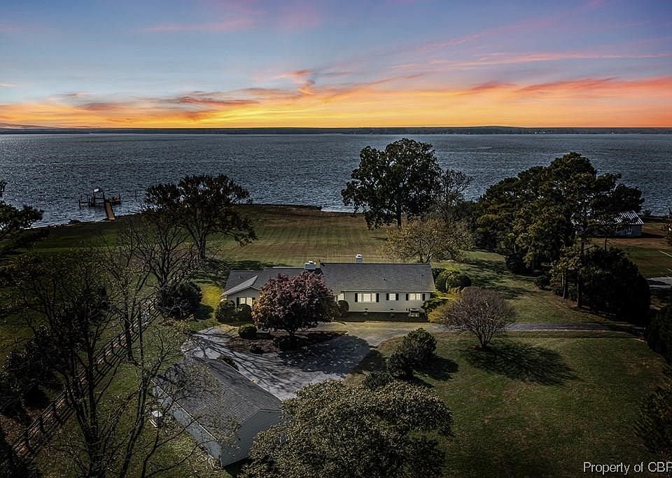 Life is better on the River! This special Rappahannock River home located on 4.8+-acre site with 370 feet of shoreline beach for playing, relaxing, launching water toys and fishing. South/Westerly exposure creates incredible summer breezes and westerly sunsets will amaze you. A beautiful lawn is perfect for playing or ideal for creating a playground pool, picnic and game areas The charming coastal cottage is ideal with a spacious floorplan. Interior designed with the living area including family room, kitchen, study, dining room, butler's pantry with prep area plus laundry in center of home. Two opposite wings include owners suite plus 3 additional guest ensuites. A riverside sunroom and patio open to family room. Oversized dining room is perfect for family/friends gatherings. Owners suite includes a study with fireplace, bedroom and bath. Ideal. Land abounds in history, see documents attached . It's a magical river location. Come for a visit.
