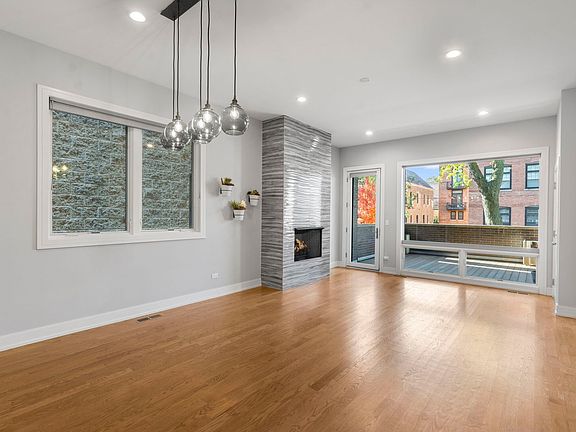 Live at the center of it all in this stunning duplex down condo 1.5 blocks from Division Street! This move-in ready, 3 bed, 2.1 bathroom home features classic finishes & high ceilings throughout. Step into your front formal living & dining room which features a gas fireplace and large pictures window & opens up to a front covered deck. Expansive rear family room which opens to chef's kitchen that features timeless white cabinets, quartz counters, breakfast bar, table space & beverage fridge. Spacious lower level has three bedrooms all on same floor with heated floors throughout. Extra large primary suite is a true retreat with a wall of built-ins that can double as office space, electric shades, walk-in closet & spa-like bathroom that has double sinks, steam shower & separate tub. Second & third bedrooms features walk-in closets & shower a lovely hall bathroom. Additional features include: custom built-out closets throughout, side by side washer & dryer with above storage, hardwood floors through main level, wired for speakers throughout. 3 private outdoor spaces including an incredible garage rooftop deck ideal for entertaining or as your relaxing city oasis with pergola, built-in kitchenette, water and fire pit. 1 garage parking spot & additional storage closet included. Don't miss this special home!