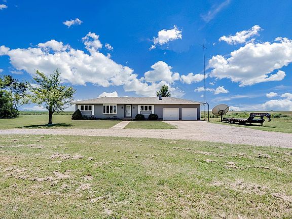 Welcome to your slice of the Country, just off Black top & 40 minutes from Wichita!! Spacious Solid Custom Built on 6.89 acres, offers the perfect balance of comfort and functionality. This 3 Bedroom, 3 Bath Home features a Split Bedroom Plan, Large 14x16 Master Suite, New Roof in 2018, New HVAC in 2021 and an inviting floorplan with ample natural light**Full finished basement with Stone Woodburning Fireplace, Bar with Plumbing hook ups, Full size Fridge, Bonus Room, Office, Large Storage, and Finished Laundry Area. Oversized attached Finished Two-Car Garage with plenty of space for vehicles, tools, and projects. Enjoy Relaxing on your Covered Deck or by the Firepit, with wide-open views! Plenty of Room to roam with a fenced pasture, ideal for horses or livestock. Well Water with Water Spigots throughout property. Round Top barn with lean-to and corral adds versatility for equipment storage and farming. Whether you’re looking for a quiet retreat or a property with room for animals and outdoor living, this one checks all the boxes. Don’t miss this rare opportunity to own acreage with Modern Convenience and Country Charm! Call or Text for your Private Showing Today!