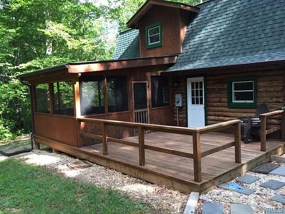 Waterfront on the Mattaponi River. This log cabin has many upgrades to the property. The home features 2 bedrooms, 2 baths, family room with stone fireplace, large eat-in kitchen with bar overlooking the river. Some of the upgrades and additions include: new screened-in-back porch and deck, new roof in 2017, new boat dock, pole barn and garage. Property has new well, well pump and hot water tank. Many of the windows are new. Retaining wall has been added to the front of the house. New landscaping has been completed. Yearly HVAC and termite inspections have been done since 2016. Rebuilt front porch. This is a must see on the water! Walk to the dock and take in the view. Really unbelievable