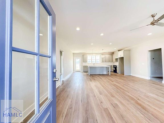 Electric fireplaceBack porchModern open living spacePlank flooringSpacious front porchWalk-in pantryWalk-in closet