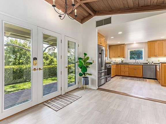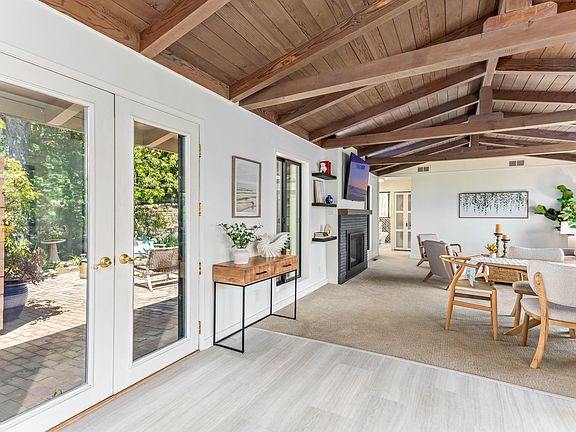 Mission Canyon Mid-Century home in a tranquil setting with beautiful mountain views, situated on .46 acres. Spacious living & dining area with vaulted open beam ceilings, walls of windows, fireplace & French doors to secluded patio area. Open kitchen with great counter space, stainless appliances & breakfast nook. Primary bedroom with custom closet & modern ensuite bath on one wing, two bedrooms with cool guest bath on the opposite wing. Permitted bonus space with kitchenette offers possibilities, see More.. for details. The backyard is an oasis, perfect for entertaining & enjoying the Santa Barbara lifestyle with expansive patio, dining area, colorful landscaping, fruit trees. A/C & one car garage. Great location close to Downtown, the Mission, Botanic Gardens. A very special property! " House has A/C and two zones for heating, Nest system. There are two laundry areas, one at each end of the house with a stackable washer/dryer.