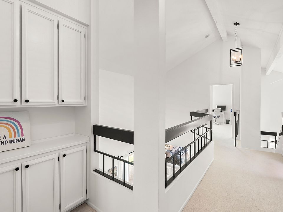 The kitchen has been thoughtfully updated with crisp white cabinetry, granite counters, and stainless steel appliances perfect for family meals or casual entertaining. Vaulted ceilings and large windows bring a sense of space and light to the living areas, while the flow between the kitchen, dining, and outdoor patio makes everyday living easy.