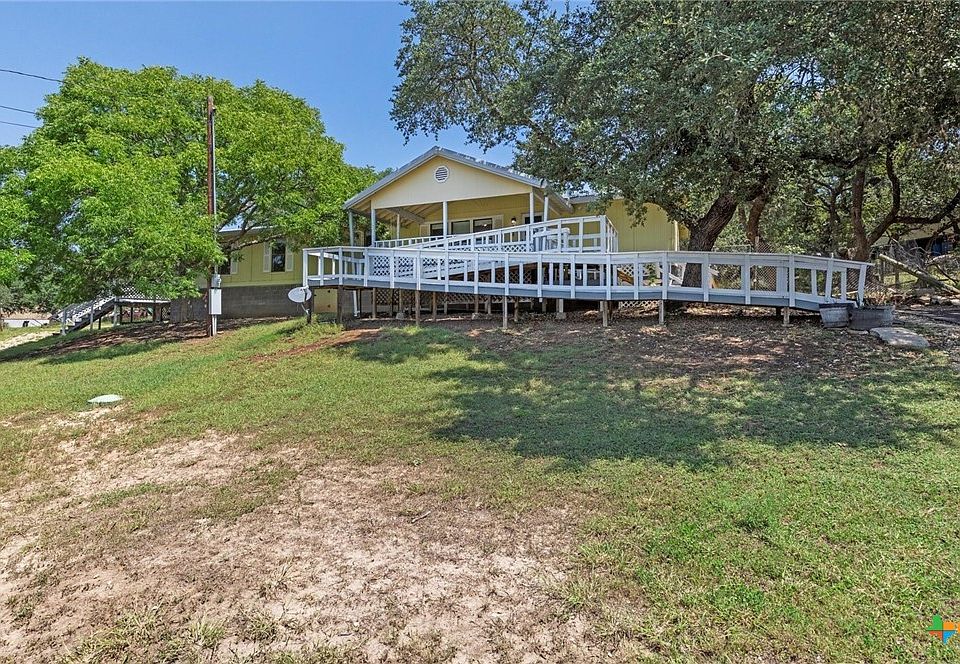 Ready for immediate move in this spacious 4-bedroom, 3-bath split floor plan home on nearly half an acre in Tamarack Shores at Canyon Lake is searching for its new own. Located on a double treed lot, this property offers privacy and Hill Country charm. Inside, a bright, updated island kitchen opens to two comfortable living areas, creating plenty of space for entertaining or relaxing. The primary bedroom features a soaking tub, and large walk in shower, a custom walk-in closet, and an additional expansive closet. Three secondary bedrooms share a full bath with ensuite-style access. The home has a large front porch deck perfect for morning coffee or evening gatherings, and a fenced area for pets. A disability access ramp connects to the paved driveway and main entry, while additional parking at the side entry leads conveniently to the laundry room and a third full bath-ideal after lake or river days. Community amenities include a pool, park, equestrian trail, and picnic area. Everyday conveniences-grocery, dining, gym, schools, library, and sports fields-are just minutes away. Located in desirable Comal ISD.