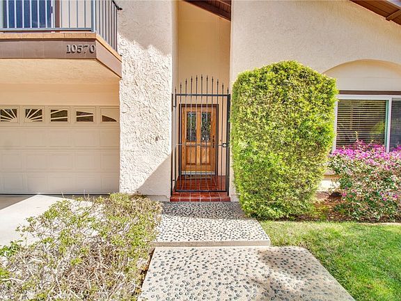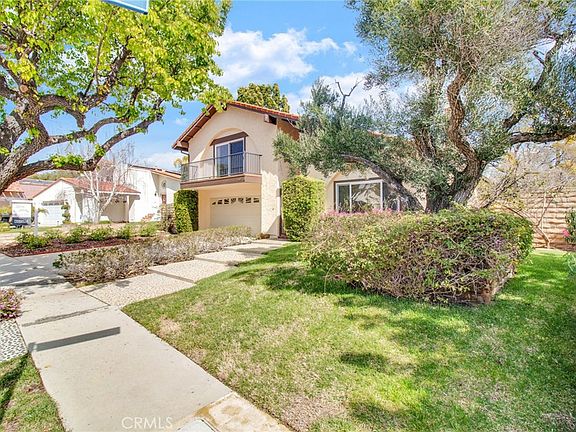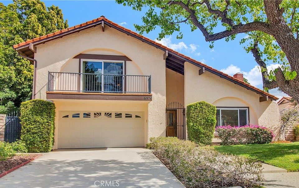 Nestled in a peaceful Chatsworth neighborhood, this lovely home has been cherished by the same family for 46 years. Through the gated entry, you'll be welcomed by the formal living room with high ceilings and a cozy fireplace. Adjacent to the living room lies the dining room, perfect for family gatherings. The large eat-in kitchen features tile countertops, a double oven, and a gas range, open to the family room with a wet bar. Upstairs, you'll find 3 large bedrooms with a full hallway bath, as well as the primary suite with its own private bathroom, walk-in closet, and balcony. The backyard is beautiful, featuring a huge covered brick patio and lush greenery. Perfect for entertaining large groups or intimate family gatherings, the backyard is complete with hardscape details and flowering trees. Additionally, this home boasts newer windows/sliding glass door, a full-size laundry room, and an immaculate two-car garage with fresh epoxy flooring. This is a true gem that won't last long!