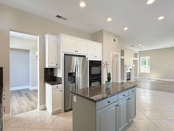 - Kitchen with granite countertops, island, walk-in pantry, ample storage, and connects to dining room.