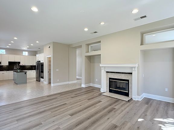 - Primary suite with fireplace, spa-style bathroom, dual vanities, soaking tub, and walk-in closet.