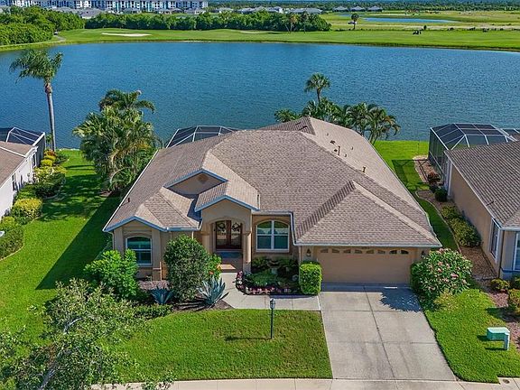 You're going to set your social media on fire with sunset photos here as this Greenfield Plantation home offers incredible views of the 16th green complex as there are no neighbors blocking the OMG view - which can be yours today. Hand selected for the view, this 4 bedroom 3 bath home built by Medallion Homes features many new items for you to enjoy, from a completely rebuilt kitchen featuring a KitchenAid stainless steel appliance package to hand selected quartz counters and new cabinetry, a roof replacement, and IMPACT WINDOWS plus Kevlar blankets on the back lanai and front door provide that sense of security and lower insurance one cherishes. Bathroom counters have been replaced with high-end stone, crown molding, new LED lighting and more complete the package here. Bedroom 4 would also be my office and who can blame them as THAT VIEW is outside the corner windows! Greenfield Plantation is located oh-so-close to Lakewood Ranch, great for shopping options like Costco, target, a new Whole Foods scheduled, Aldi, Publix and more! Commuting to St Pete or Tampa is a breeze as it's within a few miles of I 75 and the ever-growing University Town Center Mall is just 2 exits south on I 75. Plenty of Golf options here including the Public Access Links at Greenfield Plantation and less that 2 miles away is Waterlefe Golf Club - host to 8 local US Open qualifiers! Come check out the view and what this home offers (The view plus impact windows and Kevlar lanai curtains) and you'll know why this Greenfield Plantation house will be your home.