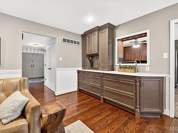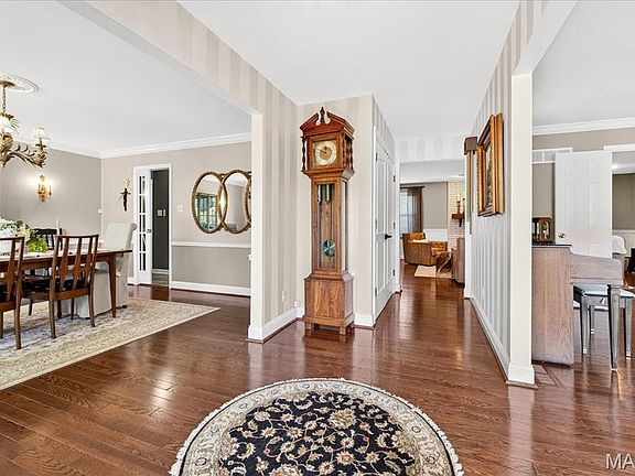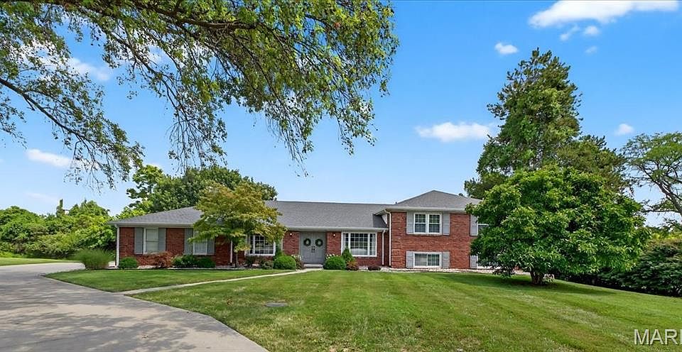 Nestled in the desirable Lindbergh School District, this beautifully updated home offers an impressive 3,750 square feet of living space, perfectly designed to accommodate every lifestyle. Set on a sprawling, level 1.71-acre lot on a quiet cul-de-sac street, the property combines privacy, space, and convenience. Inside, the main level features a stunning kitchen with granite countertops, stainless steel appliances, & a spacious breakfast room—ideal for casual meals & morning coffee. The large family room is warm & welcoming, complete with a cozy fireplace, built-in bar, & rich hardwood floors that flow throughout the living & dining rooms, both enhanced by elegant crown molding. An updated half bath adds style and function to the main floor. Upstairs, the expansive primary suite offers two walk-in closets & a luxurious bath with custom tile work. Three additional bedrooms are generously sized with ample closet space. An updated full hall bath with a double sink vanity completes this level. A few steps down, the oversized second family room provides walk-out access to the backyard, along with a fifth bedroom perfect for guests or a home office, & another updated full bath. The finished lower level adds even more versatility with a spacious game room/rec room, laundry area, & abundant storage. Outside, the covered patio overlooks the vast yard. Two-car garage, large driveway, & easy access to shopping & highways, this home offers the ideal blend of space, style, & location.