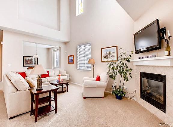 Meticulously maintained corner/end unit condo with 2beds, 2 baths, & 2 car tandem garage in the highly sought after Highland Walk! The main level boasts a Great room w/vaulted ceilings, fireplace, open to the spacious dining room & kitchen w/ granite countertops. There is also a private deck with a peak-a-boo mountain view, main floor bedroom/study, full bath & laundry room. The Upper level has an oversized master suite w/sitting area, 5 piece master bath, & large walk-in closet. The 2 car tandem garage is attached w/plenty of storage. Quick access to highways & transit. Fantastic community amenities: King Soopers, Starbucks, banking, dry cleaning, Southridge Rec Center, and walking/biking trails! Pardon the yellow paint on windows, new windows to be installed Spring/Summer 2017.