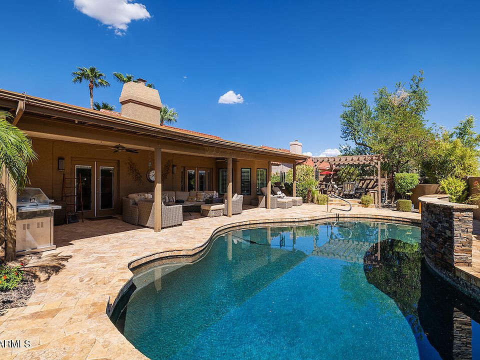 MOTIVATED SELLER! Beautifully remodeled Scottsdale Ranch home with 3 bedrooms, 2 baths, and an open floor plan. Vaulted ceilings, travertine floors, and granite countertops create stylish sophistication, while upgraded baths and designer touches throughout make this residence truly special. The chef's kitchen flows seamlessly into light-filled living and dining spaces. Enjoy breathtaking Camelback Mountain and sunset views with rare north-south exposure. The backyard retreat features paver patios, lush landscaping, and a sparkling pool—perfect for entertaining or relaxing. Backing to the reservation, the setting offers privacy and the unique chance to glimpse wild horses. A warm, inviting home blending elegance, comfort, and Scottsdale living at its best.